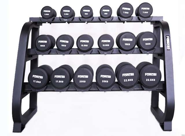 FORCE USA Commercial Round Dumbbells set with 3 Tier rack is backordered and will ship as soon as it is back in stock.
